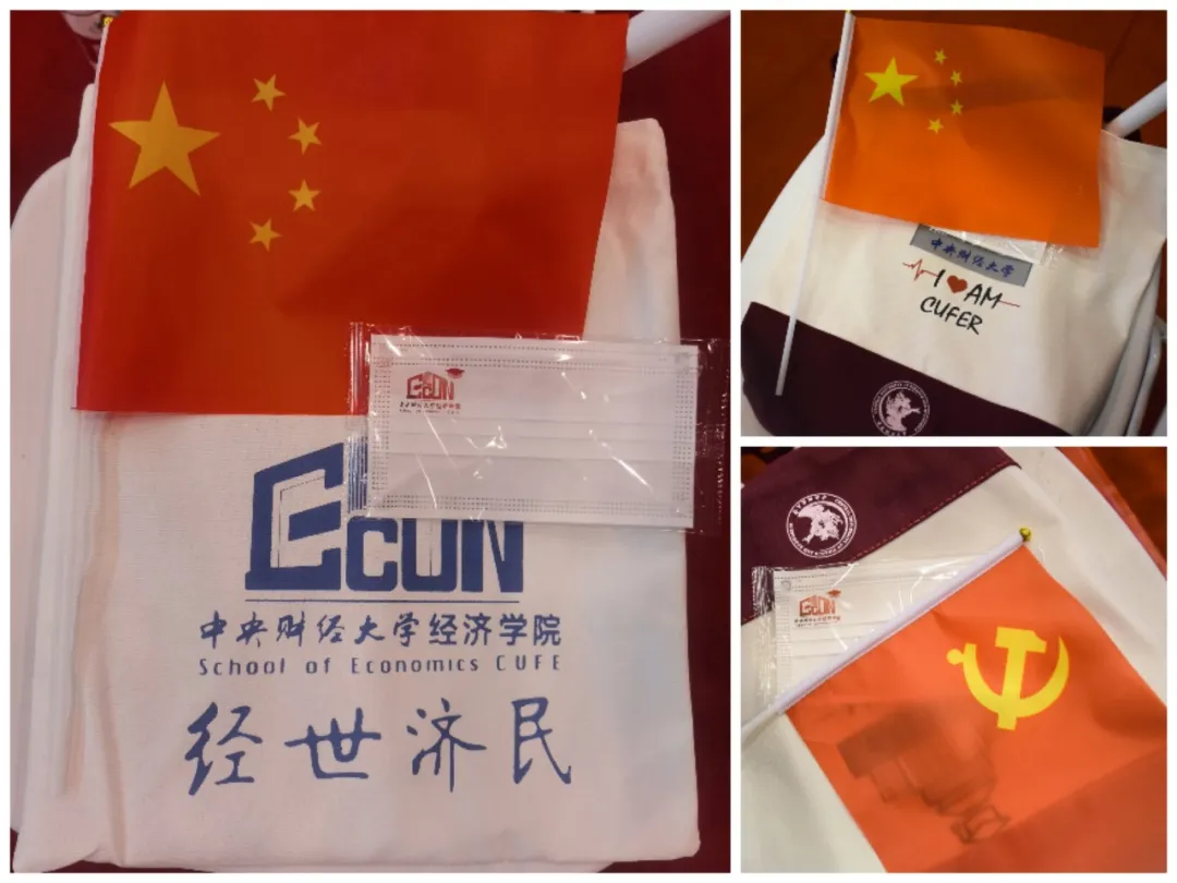 典礼现场庄重而充满温情,每一份用心准备的细节,都是经院送给毕业生的礼物。镜头前满满的感动与不舍,学院吉祥物“糯糯”和“米米”在入场处等候,体育馆内温暖的“中财红”主色调,主席台旁“I LOVE ECON”的标识,观众区里一面面鲜红的党旗、一件件精致的毕业礼物,印有学院毕业标识的特制口罩,大屏幕上一帧帧难忘的回忆,这一刻,已抵过千言万语。因疫情原因没能到场的亲友,也通过四个小时不间断的直播镜头共同见证重要时刻。
